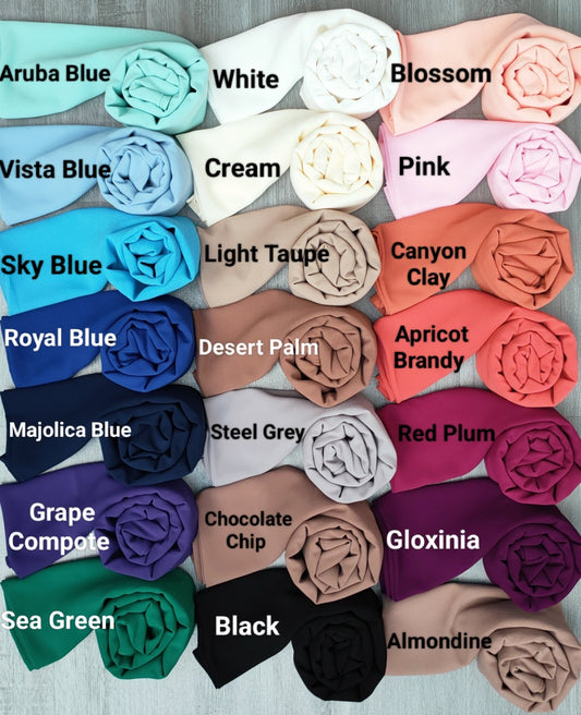 The chiffon given by the Hikmah Boutique is available in the following colors: