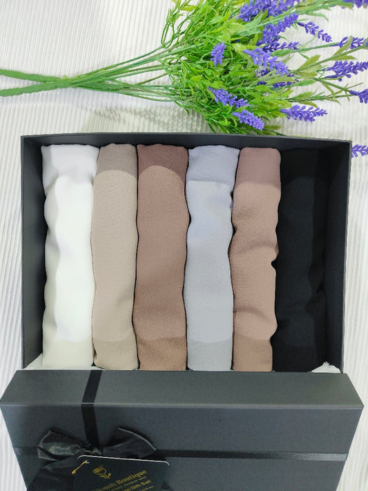 Chiffon Hijab Premium Gift Set | Adorable Range (6 Elegant Premium Chiffon Hijabs wt Bonus Pins)