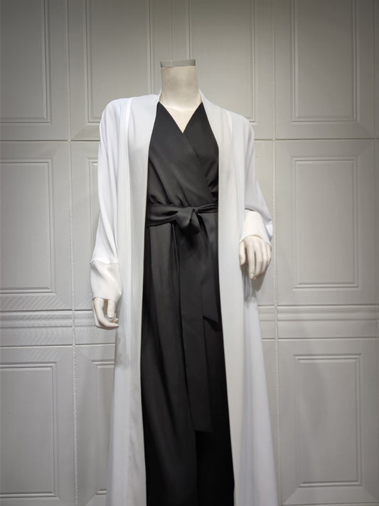 Kaftan Style Open Abaya - White