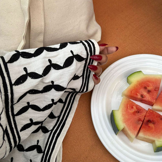 Keffiyeh Sleeve Abaya - Black