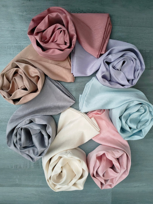 Our Satin Hijabs are carefully crafted using premium-quality satin fabric, offering a lustrous sheen and a soft, lightweight feel. The smooth texture and elegant drape of our Satin Hijabs add a touch of sophistication to any outfit, making them perfect for formal events, weddings, or simply when you want to exude elegance and grace.
